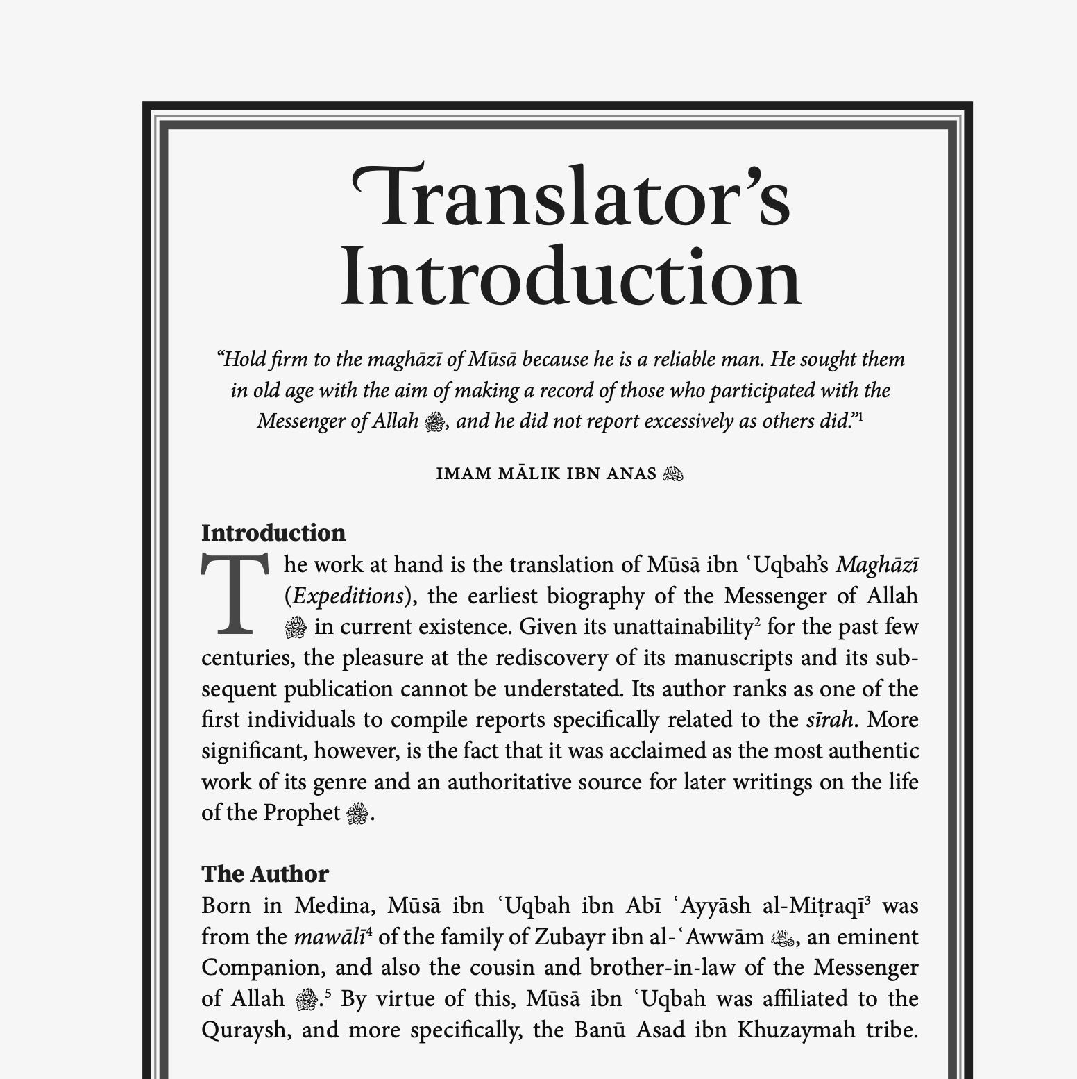 This text is the first English translation of The Maghāzī of Sayyidunā Muhammad ﷺ by the eminent Tabi'i scholar Musa ibn 'Uqbah, the earliest biography of the Messenger of Allah ﷺ currently known to exist.